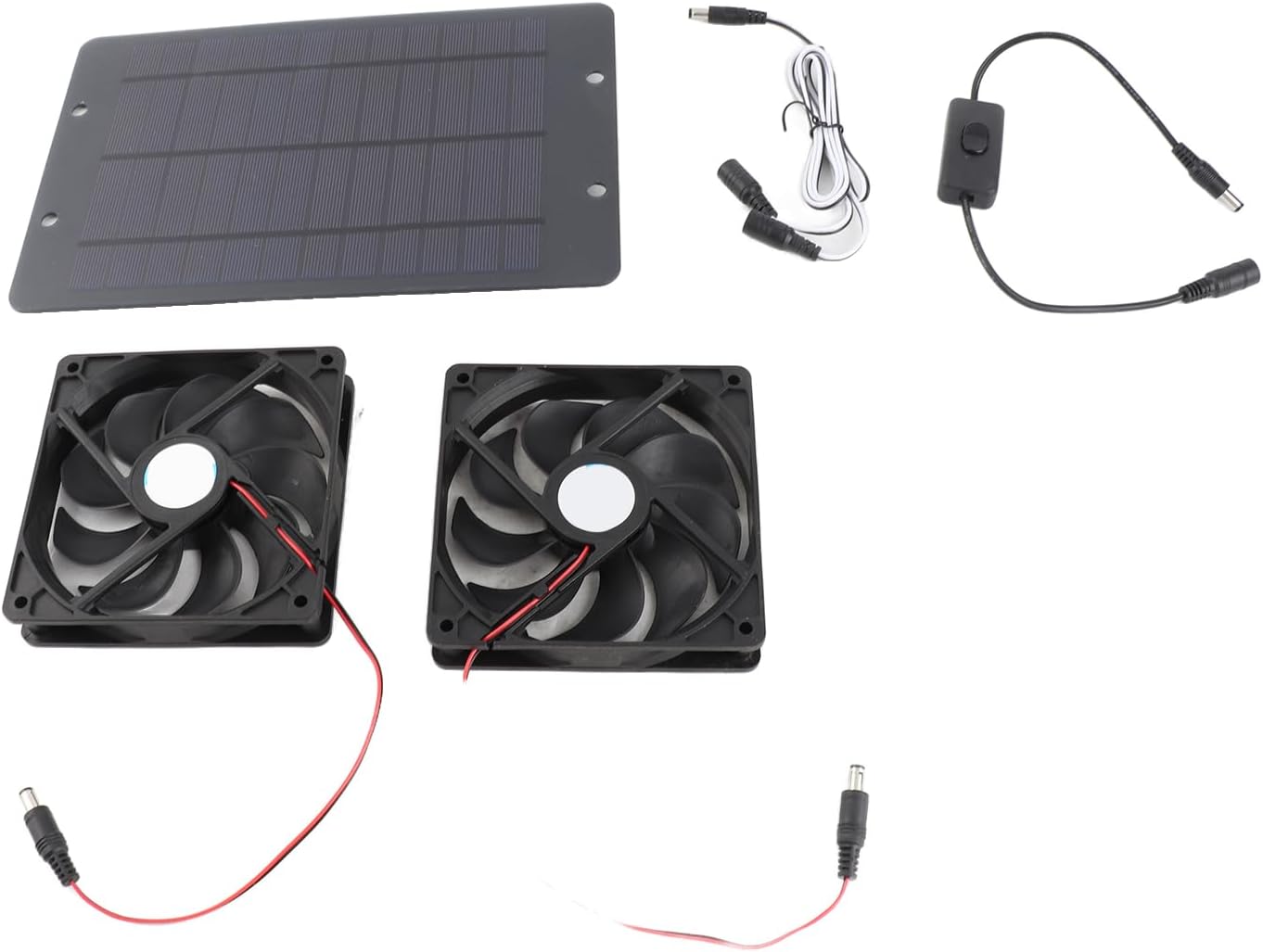 1. HIGHLY EFFICIENT HEAT DISSIPATION: Solar panel fan kit is equipped with two exhaust fans. It can effectively exhaust heat and odor from farms, chicken coops, pet toilet houses and other places to keep the air freshing. 2. SOLAR POWERED: Solar exhaust fan is powered by solar energy, no external power supply is needed, and it is energy saving and environmental as it absorbs sunlight and converts it into electricity for autonomous power supply. 3. SWITCH CONTROL: Solar exhaust fan is equipped with an on off button, which makes it easy to control the fan on off and adjust the fan's operating status as needed, realizing autonomous control. 4. MULTIFUNCTIONAL: 20W solar powered fan is also suitable for factory workshops, warehouses, greenhouses and other occasion that require heat dissipation and air exchange, providing a comfortable indoor environment. 5. EASY TO INSTALL AND CARRY: Solar powered dual fan is compact in size, easy to install and carry. It can be flexibly installed to various places to adapt to different space requirements and provide fast and effective cooling and ventilation solutions. Spec: Item Type: Solar Panel Fan Kit Material: ABS Solar Panel Size: Approx. 27.5 x 17cm / 10.8 x 6.7in Power: 20W Fan Size: Approx. 12 x 12cm / 4.7 x 4.7in Gross Weight: 551g/19.4oz packing list: 2 x Exhaust Fan 1 x Connection Cable 1 x Switch 1 x Solar Panel Note: 1. Please allow some error due to manual measurement. 2. Without power storage.